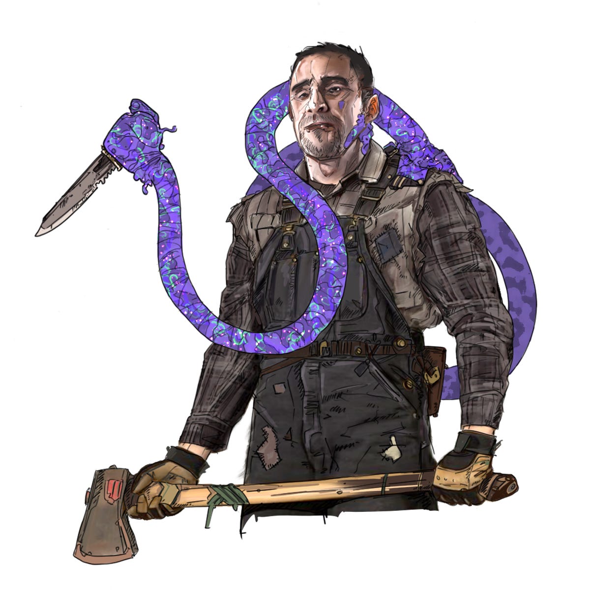 When used to attack, the hydragrip offers Reach +1 and does Str+d4 damage. Grappling rolls made with the hydragrip gain a +2 bonus. Outside of combat, the hydragrip can carry an item or perform rough manipulations such as opening a door. The tentacle is incapable of the fine motor control needed to use or reload a firearm, tie a knot, push a button, or the like.